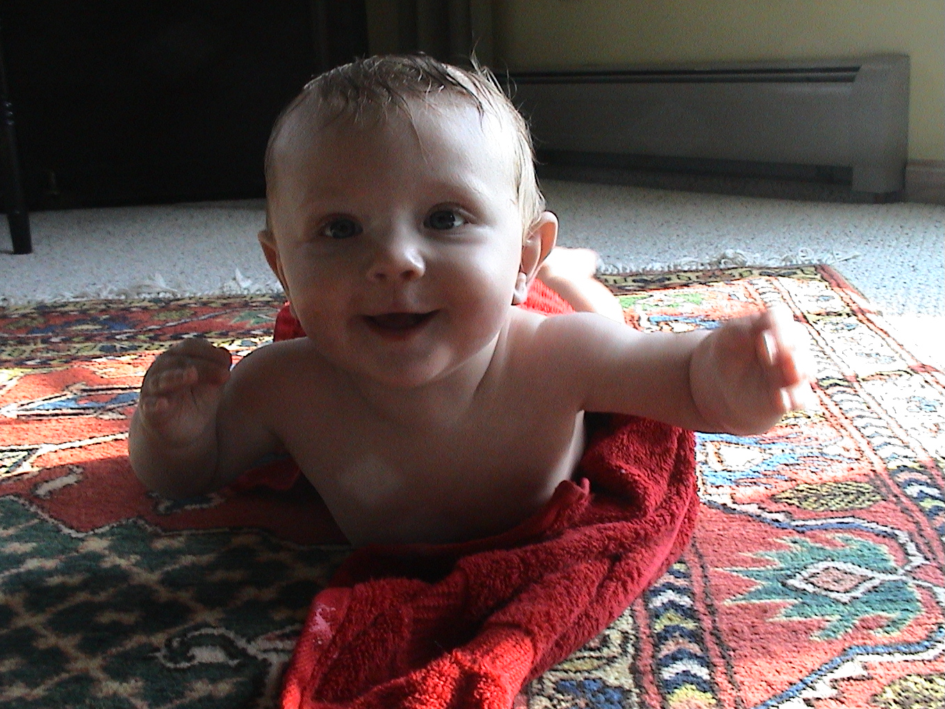 Practicing his swimming strokes. |